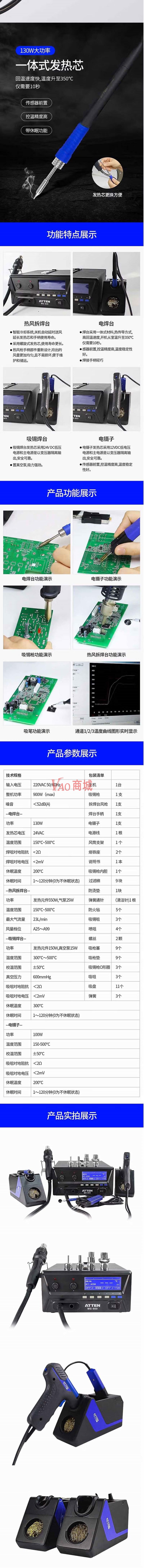 安泰信(ATTEN)焊台热风枪手柄配件AP-550B+焊台配件(AT852D/AT850D V1.0)220-240V