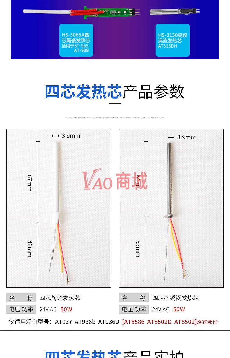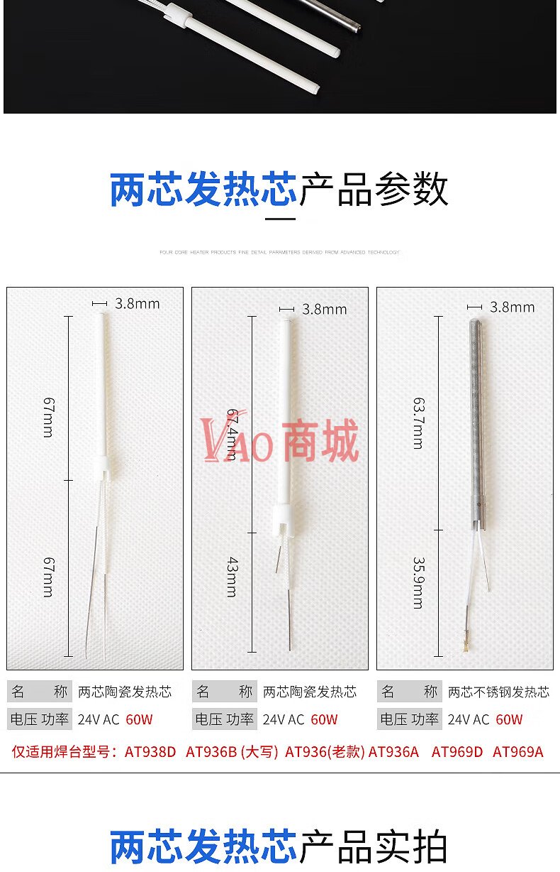 安泰信(ATTEN)电焊台烙铁发热芯烙铁发热芯配件HS-2080(ST-2080D/ST-2080)230V(80W)