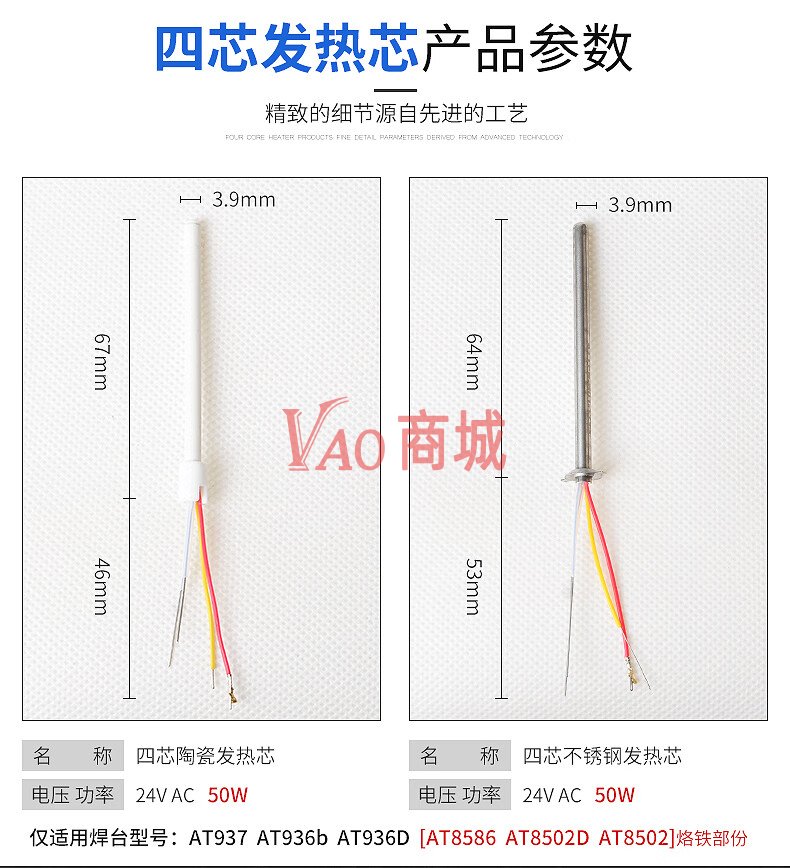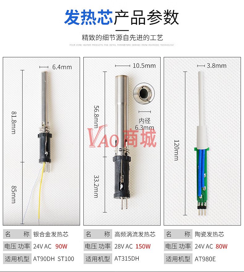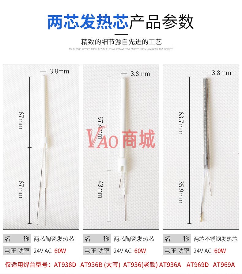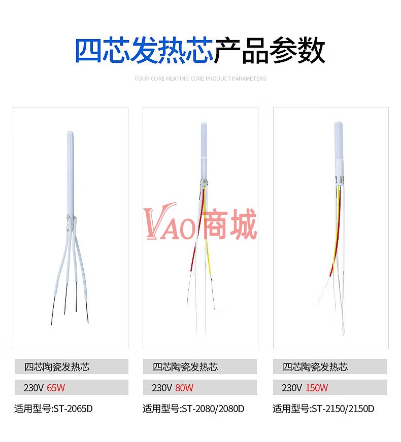 安泰信(ATTEN)烙铁芯两芯/四芯陶瓷发热芯不锈钢发热丝HS-2050烙铁发热芯配件(SA-50)(220V)