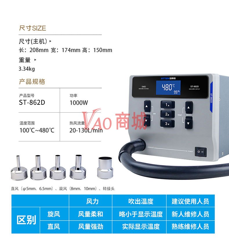 安泰信(ATTEN)焊台热风枪发热芯HR-2102A热风枪发热芯配件(ST-862D)(230V)(1000W)(插拔式)