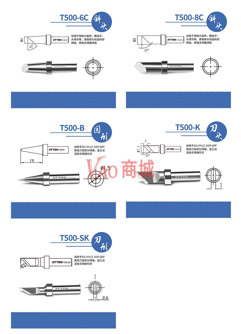 安泰信(ATTEN)T500系列烙铁头T500-3.5D一字头AT315通用