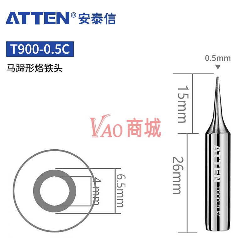 安泰信(ATTEN)T900系列烙铁头T900-0.5C马蹄头AT936焊台配件配件头
