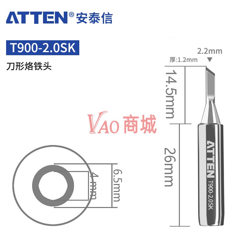安泰信(ATTEN)T900系列烙铁头T900-2.0SK刀头AT936焊台配件配件头