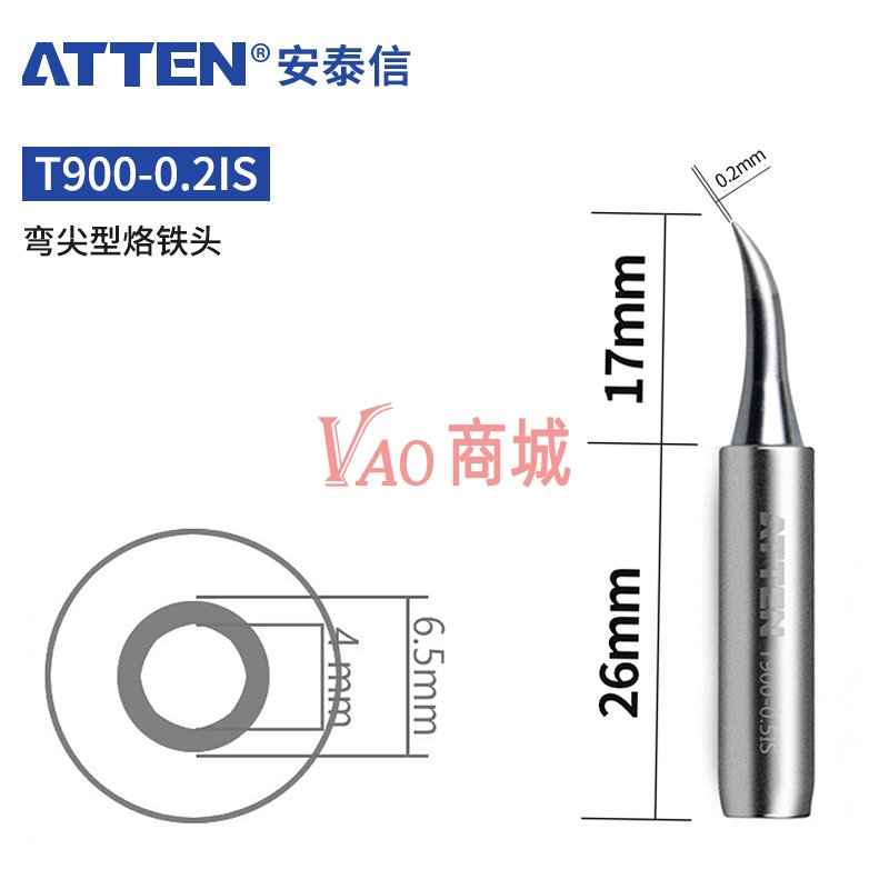 安泰信(ATTEN)T900系列烙铁头T900-0.2IS弯尖头AT936焊台配件配件头