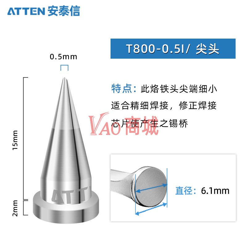 安泰信(ATTEN)T800系列烙铁头T800-0.5I尖咀ST-100电焊台专用