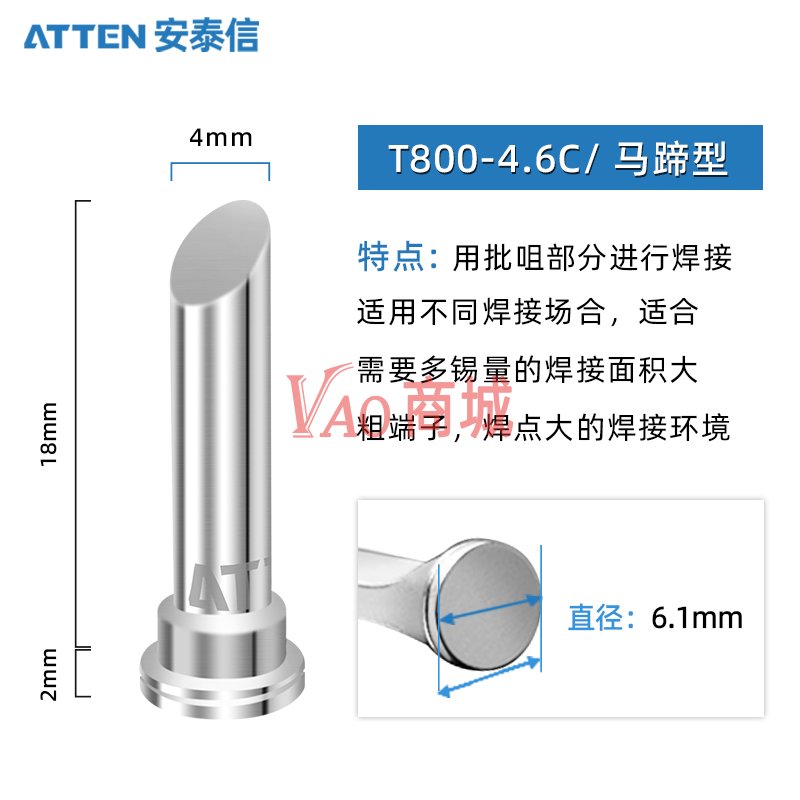 安泰信(ATTEN)T800系列烙铁头T800-4.6C马蹄头ST-100电焊台专用