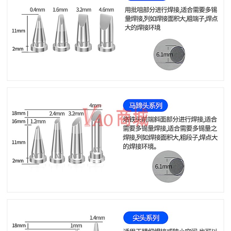 安泰信(ATTEN)T800系列烙铁头T800-1.4I尖咀ST-100电焊台专用