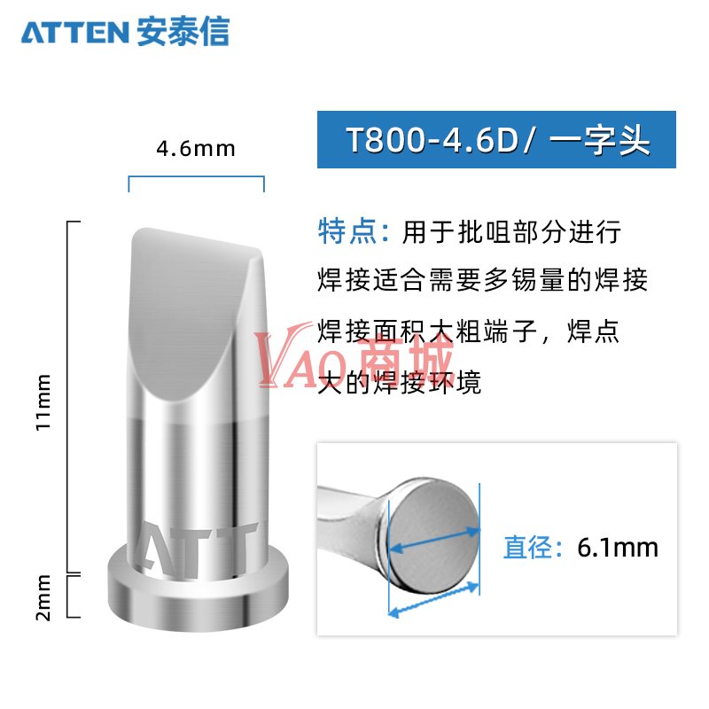 安泰信(ATTEN)T800系列烙铁头T800-4.6D一字头ST-100电焊台专用