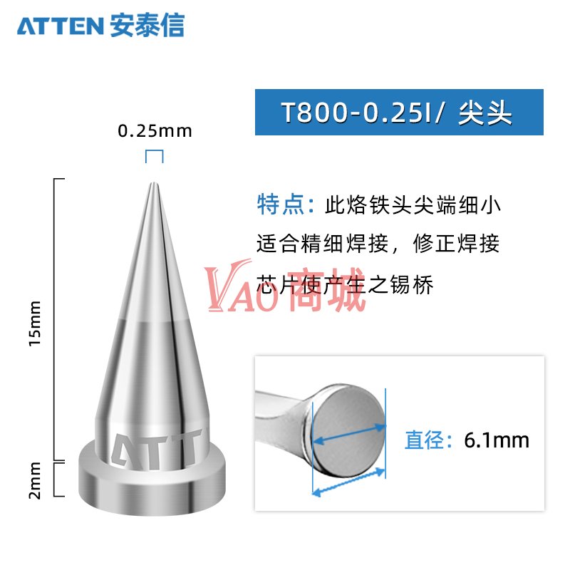 安泰信(ATTEN)T800系列烙铁头T800-0.25I尖咀ST-100电焊台专用