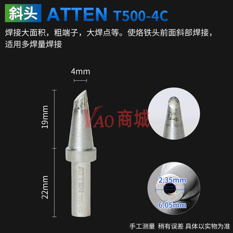 安泰信(ATTEN)T500系列烙铁头T500-4C马蹄形AT315通用