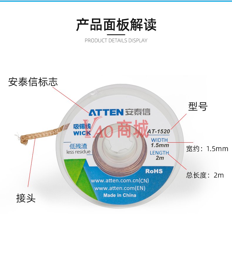 安泰信(ATTEN)焊台吸锡线AT-2015焊接工具配件2.0MM
