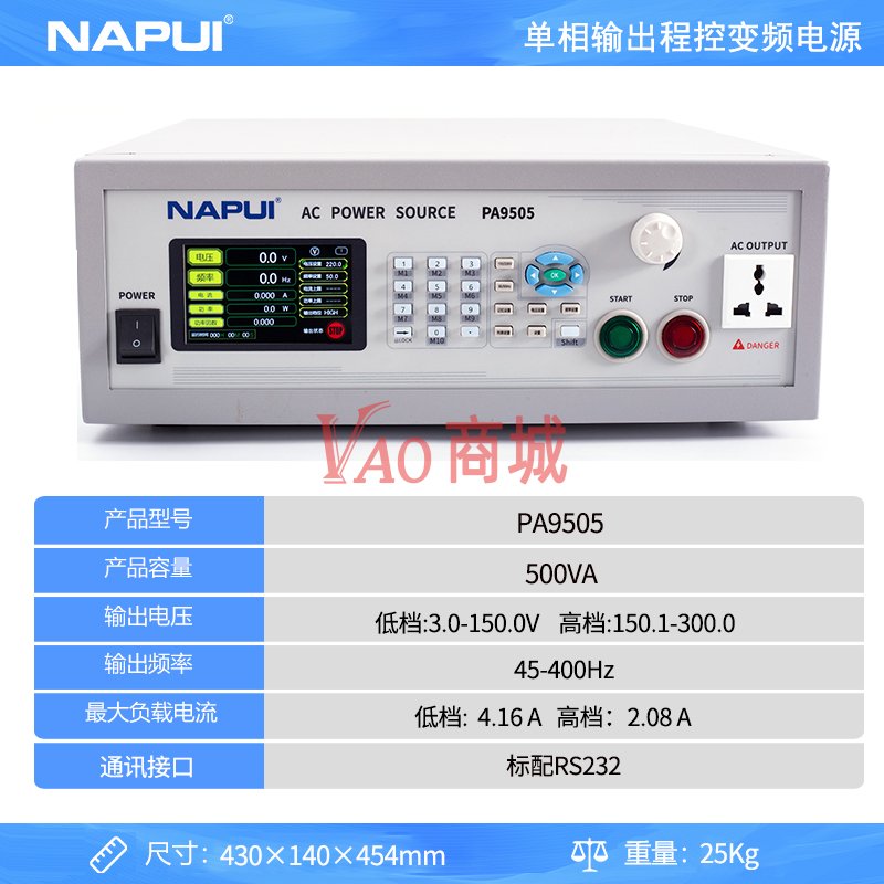 纳普(NAPUI)单相输出程控变频电源PA9505可编程稳频稳压大功率电源液晶屏显示/500W