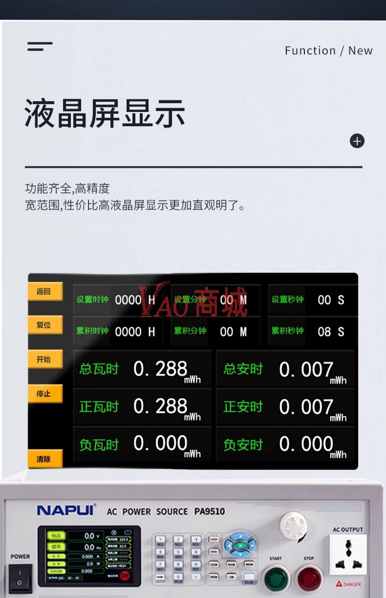 纳普(NAPUI)单相输出程控变频电源PA95100可编程稳频稳压大功率电源液晶屏显示/10KW