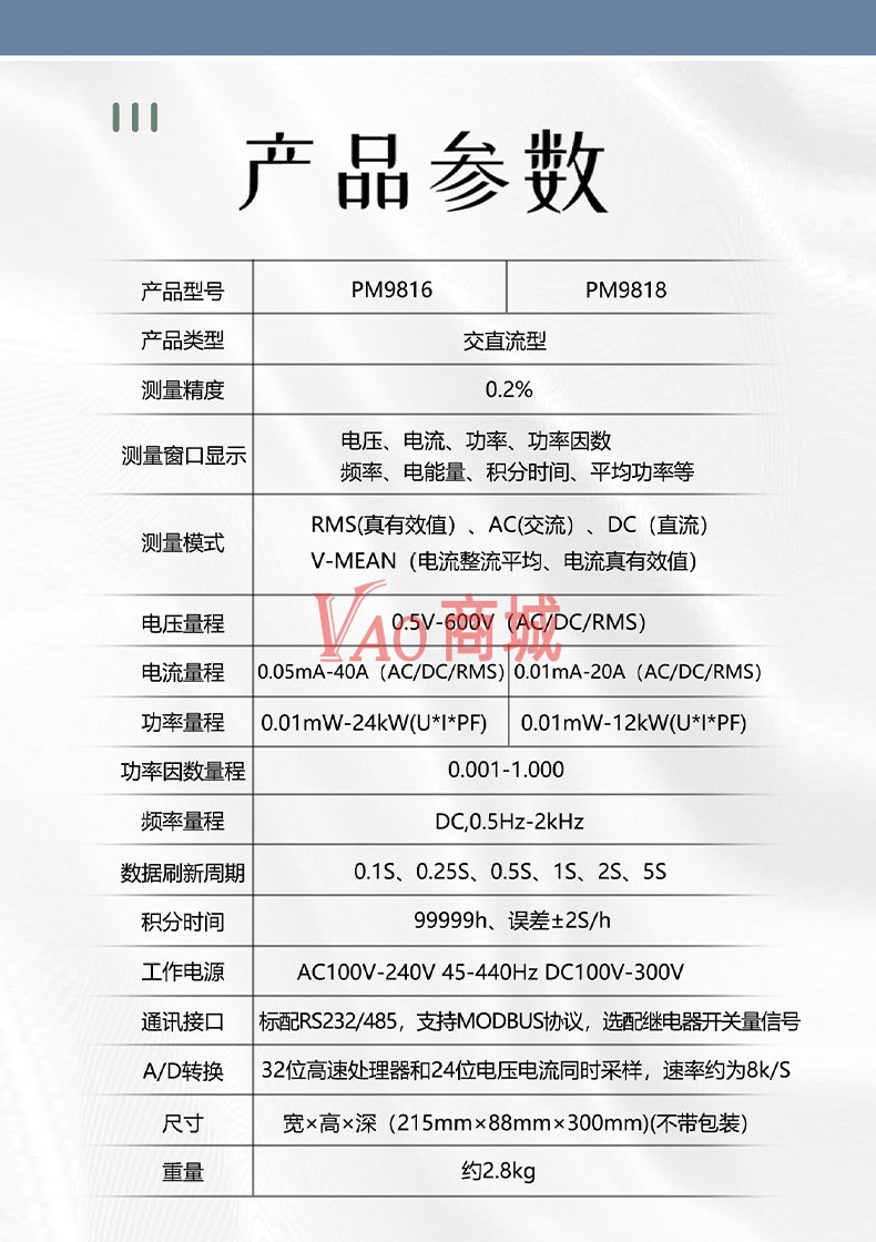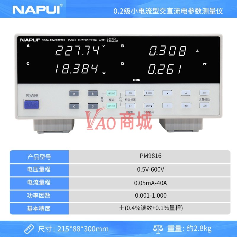 纳普(NAPUI)小电流型交直流电参数测量仪PM9816智能分析电参数功率测量电压0.5V-600V