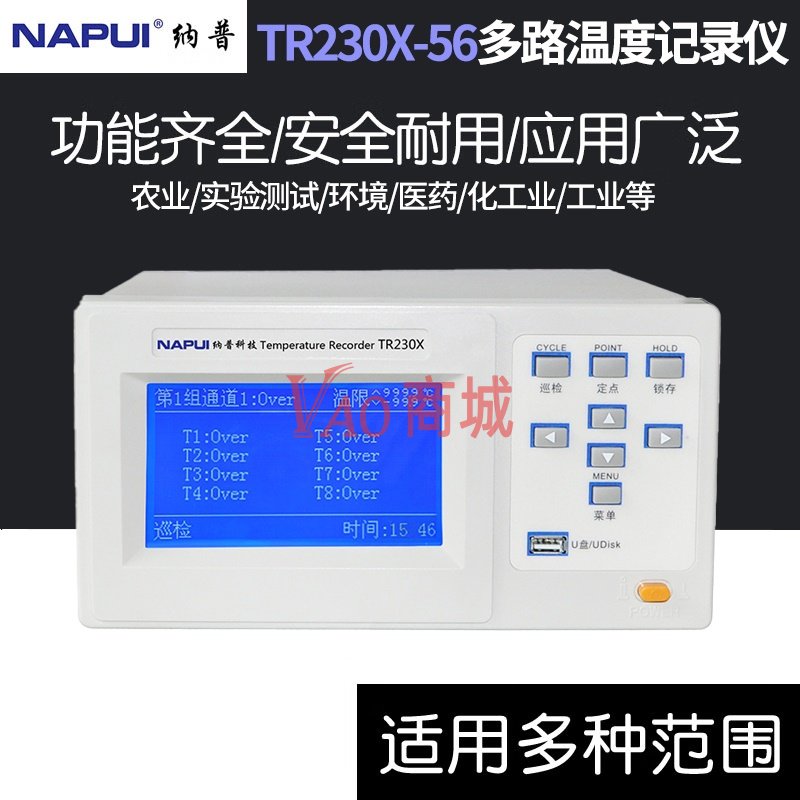纳普(NAPUI)多路温度记录仪TR230X-56大屏带通讯温升热电偶测试仪56通道