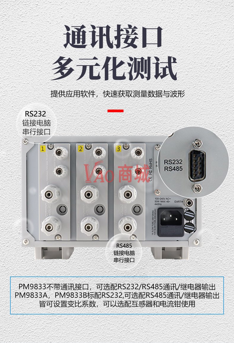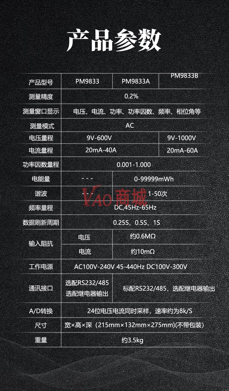 纳普(NAPUI)数字功率计PM9833B三相交流宽量程型电参数谐波电能量电流功率测量仪精度:0.2%