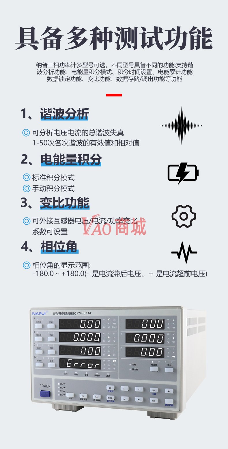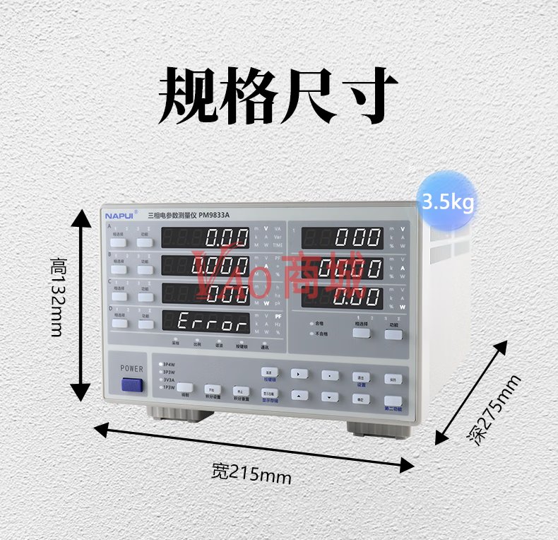 纳普(NAPUI)数字功率计PM9833C便携式三相参数仪电参数谐波电能量电流功率测量仪精度:0.2%