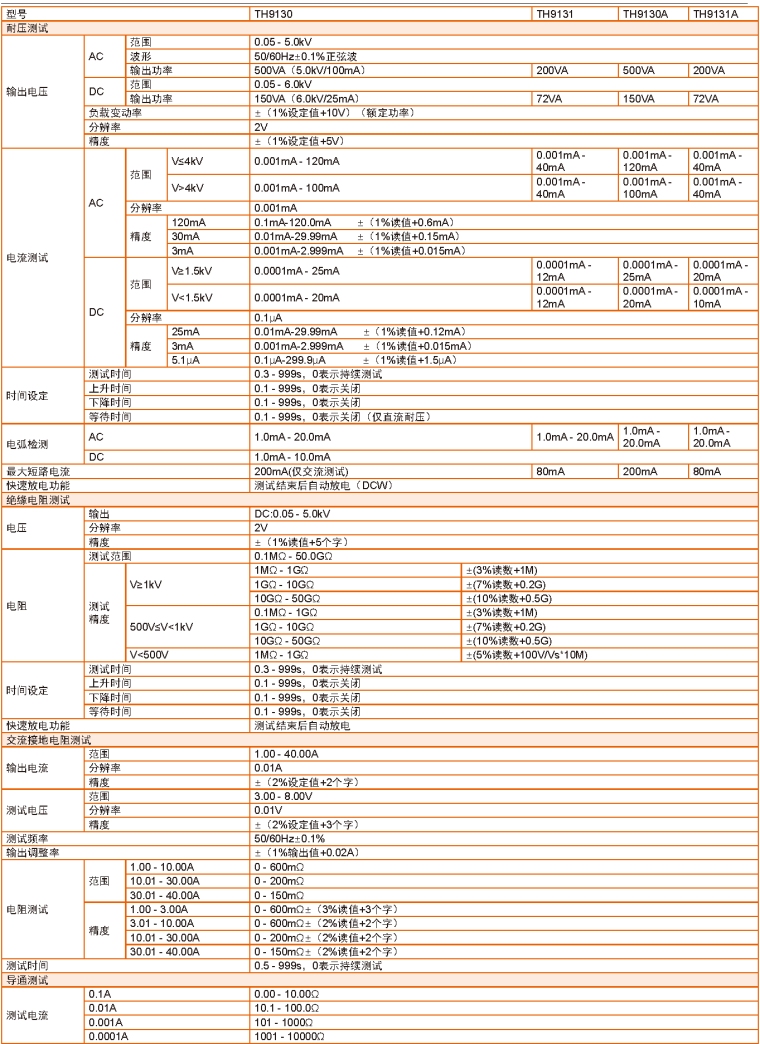 快速选型 | TH9130 | TH9131 | TH9130A | TH9131A |