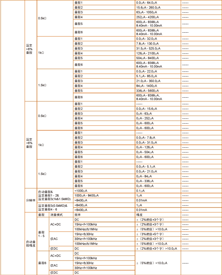 泄漏电流 | 0.0uA-10.00mA | ------ |